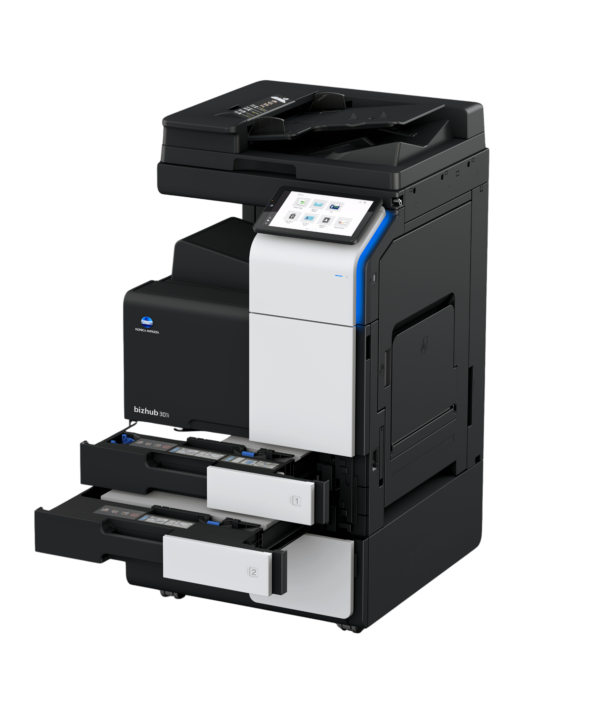 Versatile finishing options include online- and offline-stapling, punching, letterfolding of up to 3 sheets per letter and booklets of up to 20 sheets (80 pages) for improved office productivity and professional documents.
